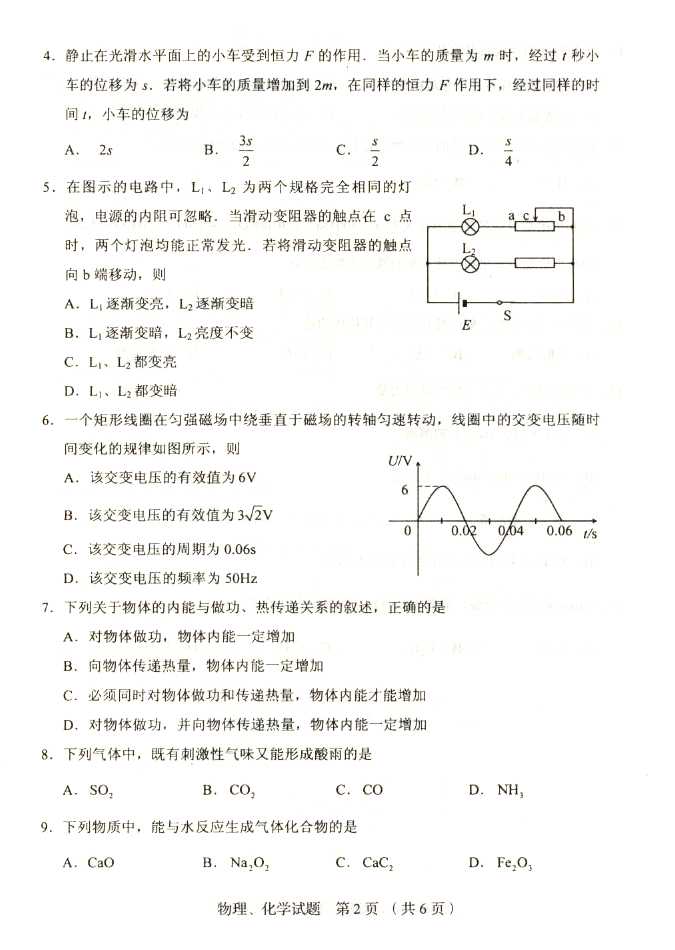 2011年全国成人高考高起点《物理化学》试题及答案