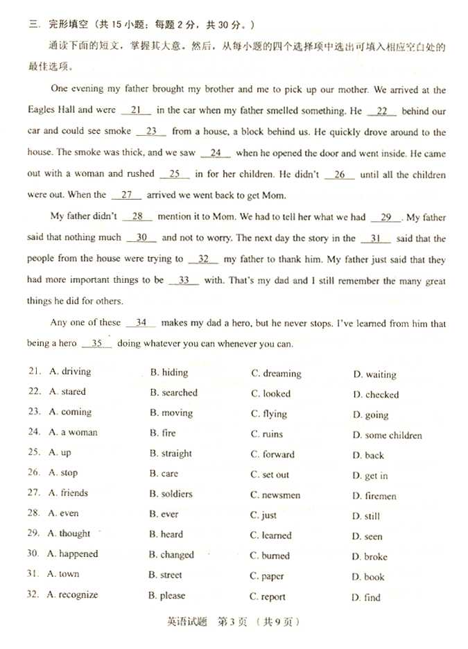 2011年全国成人高考高起点《英语》试题及答案