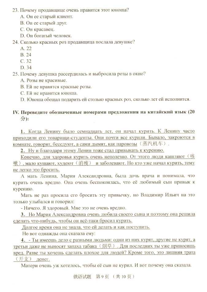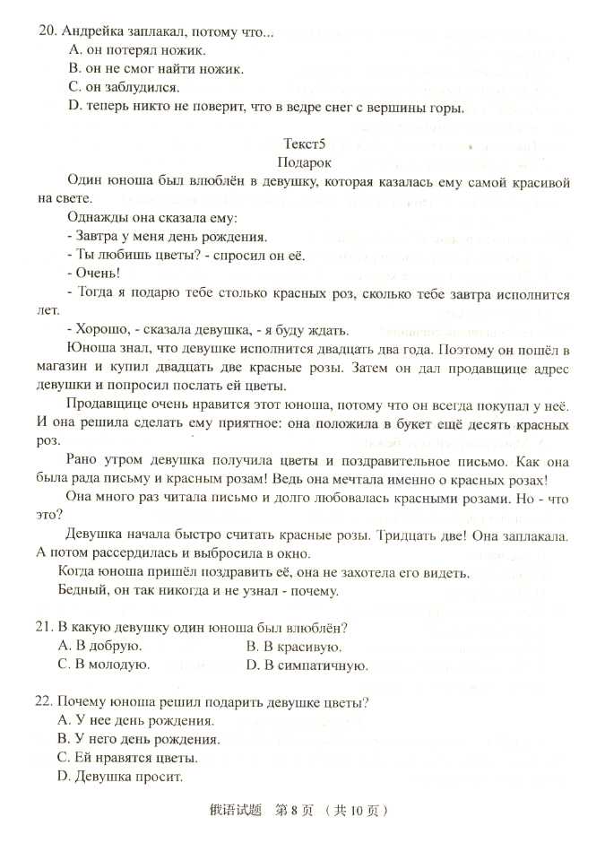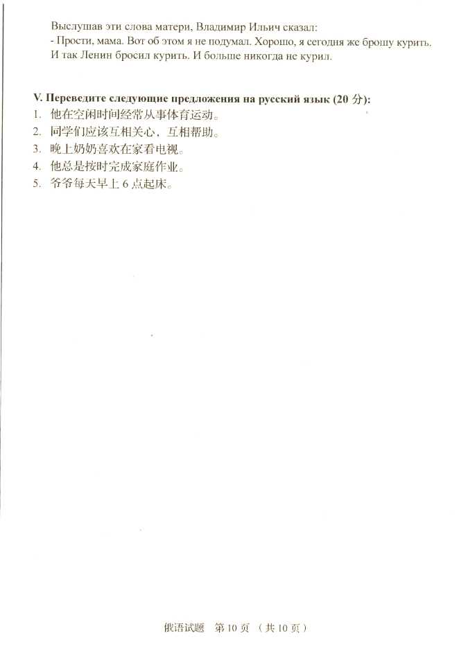 2011年全国成人高考专升本《俄语》试题及答案