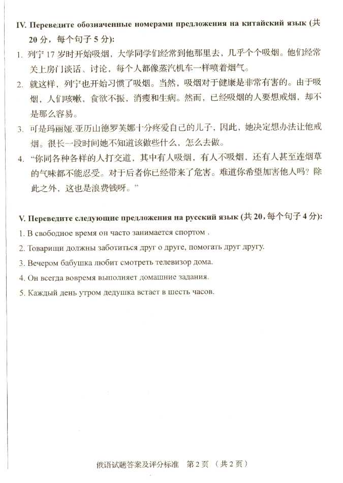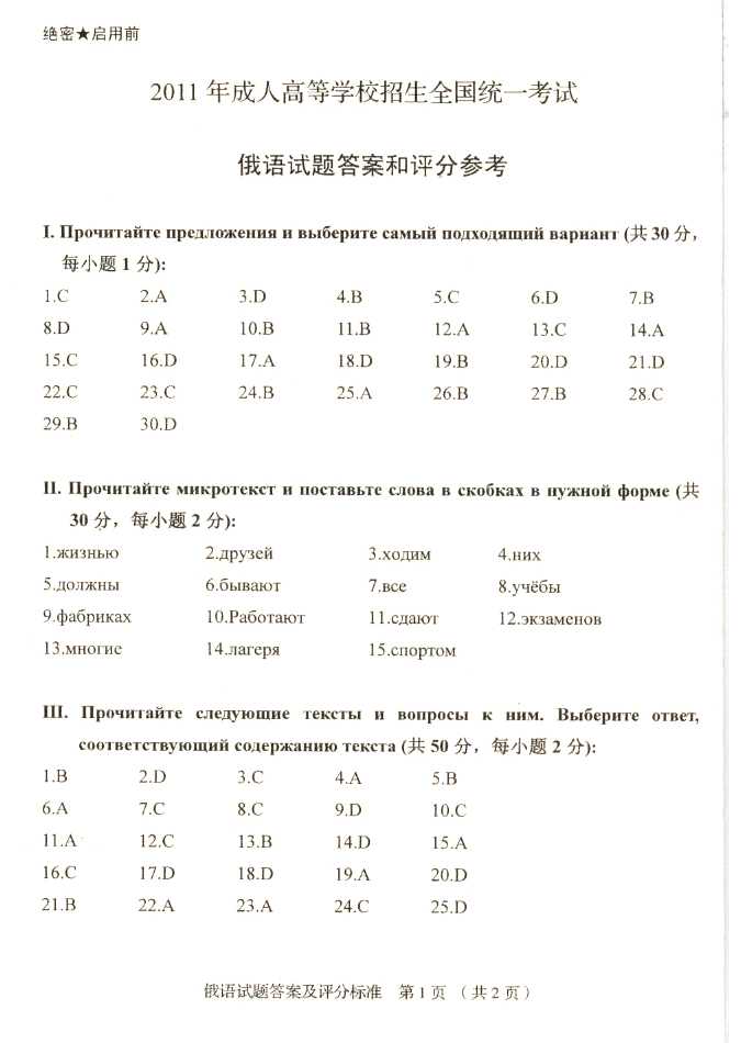 2011年全国成人高考专升本《俄语》试题及答案