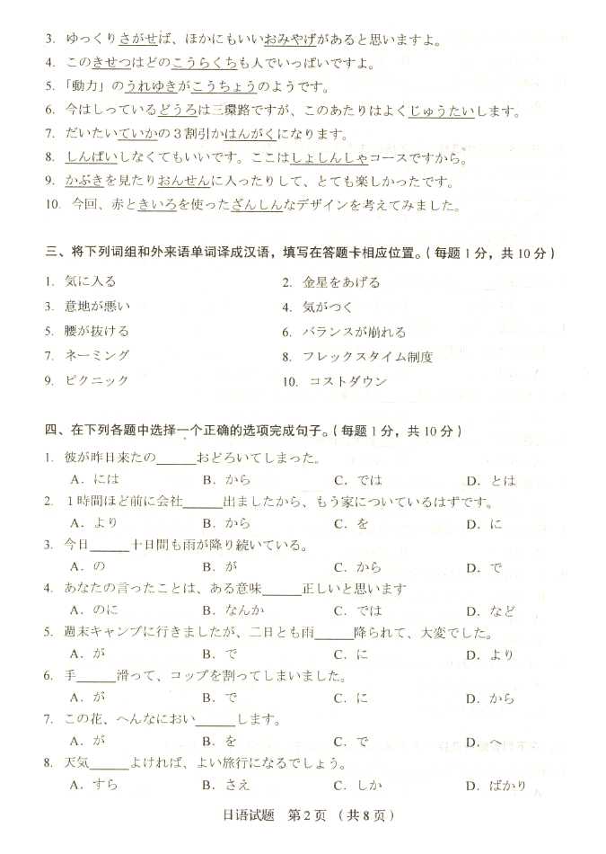 2011年全国成人高考专升本《日语》试题及答案