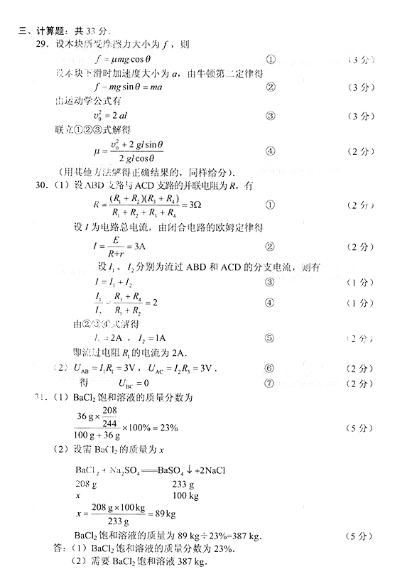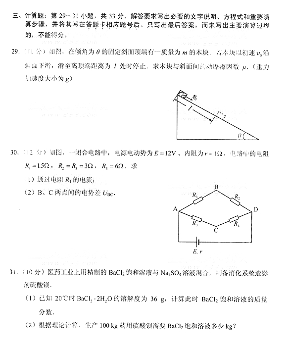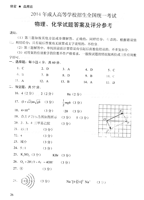 2014年成人高考高中起点《物理化学》真题及答案