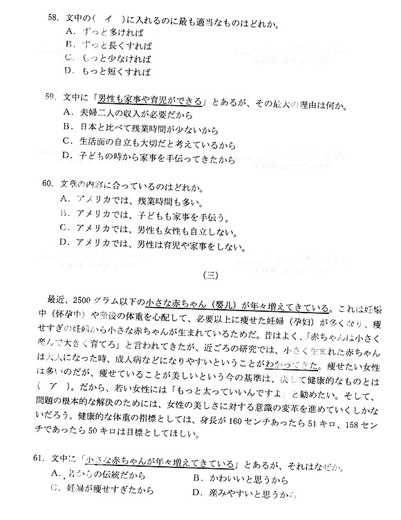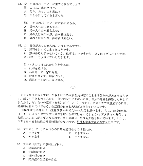 2014年成人高考高中起点《日语》真题及答案