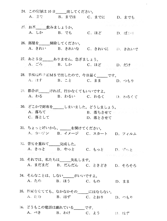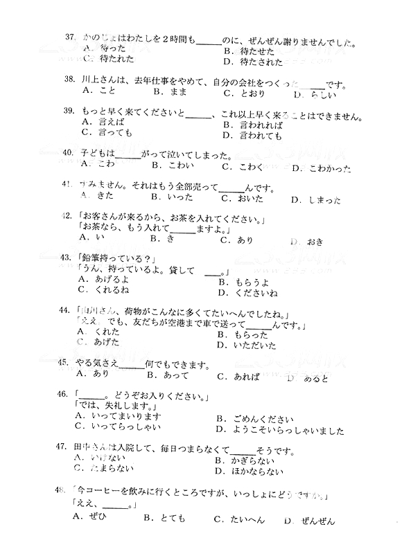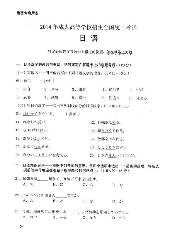 2014年成人高考高中起点《日语》真题及答案