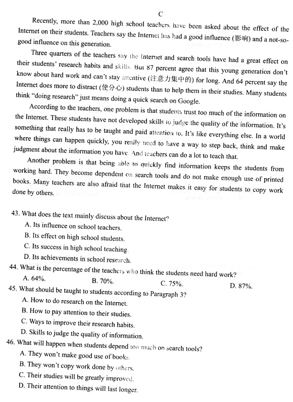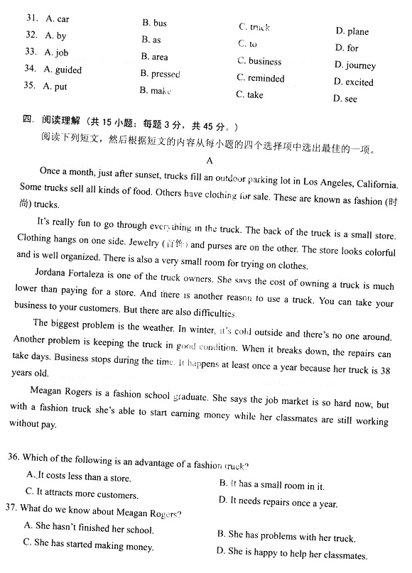 2014年成人高考高中起点《英语》真题及答案