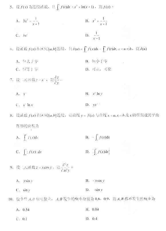 2014年成人高考专升本《高等数学(二)》真题及答案