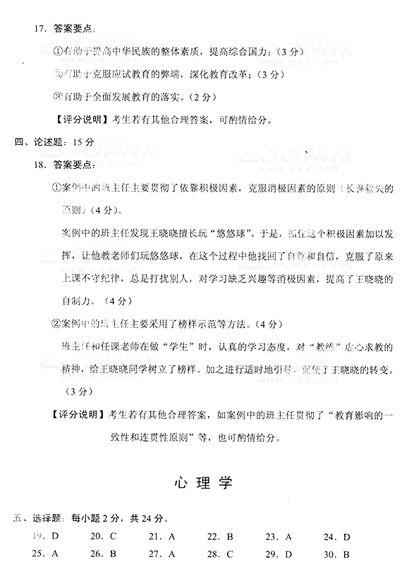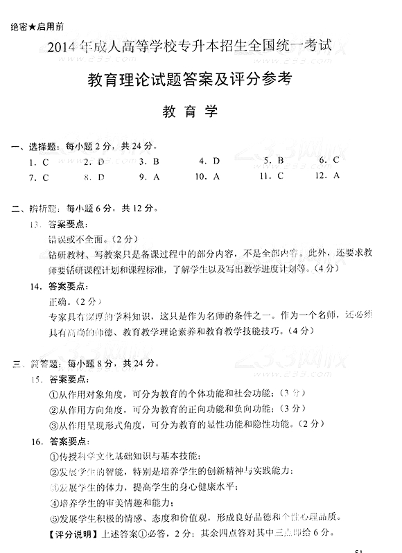 2014年成人高考专升本《教育理论》真题及答案