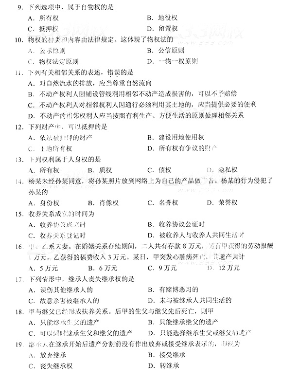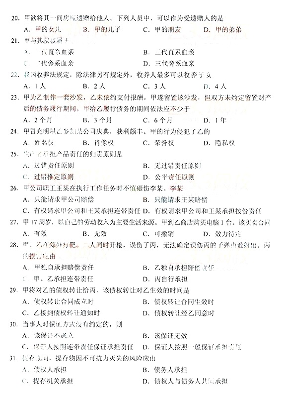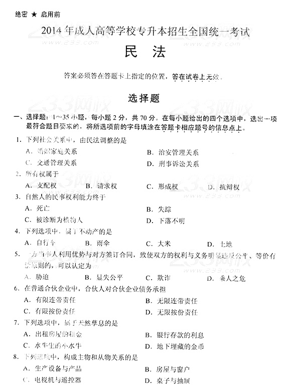 2014年成人高考专升本《民法》真题及答案