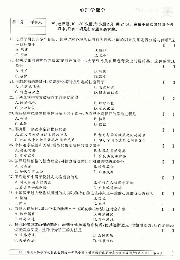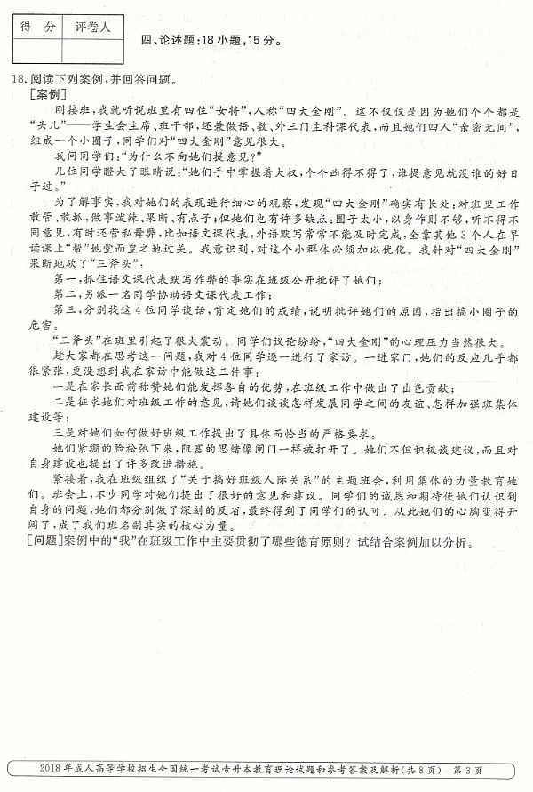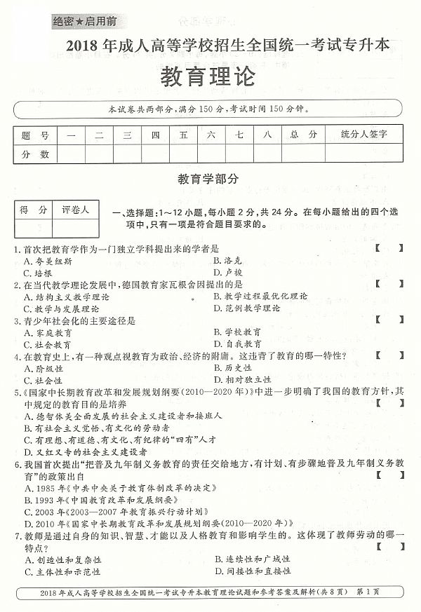 2018年成人高考专升本《教育理论》真题及答案